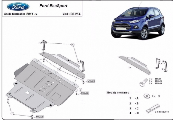 Acél motor, sebességváltó, hűtő, első lökhárító védőlemez Ford EcoSport