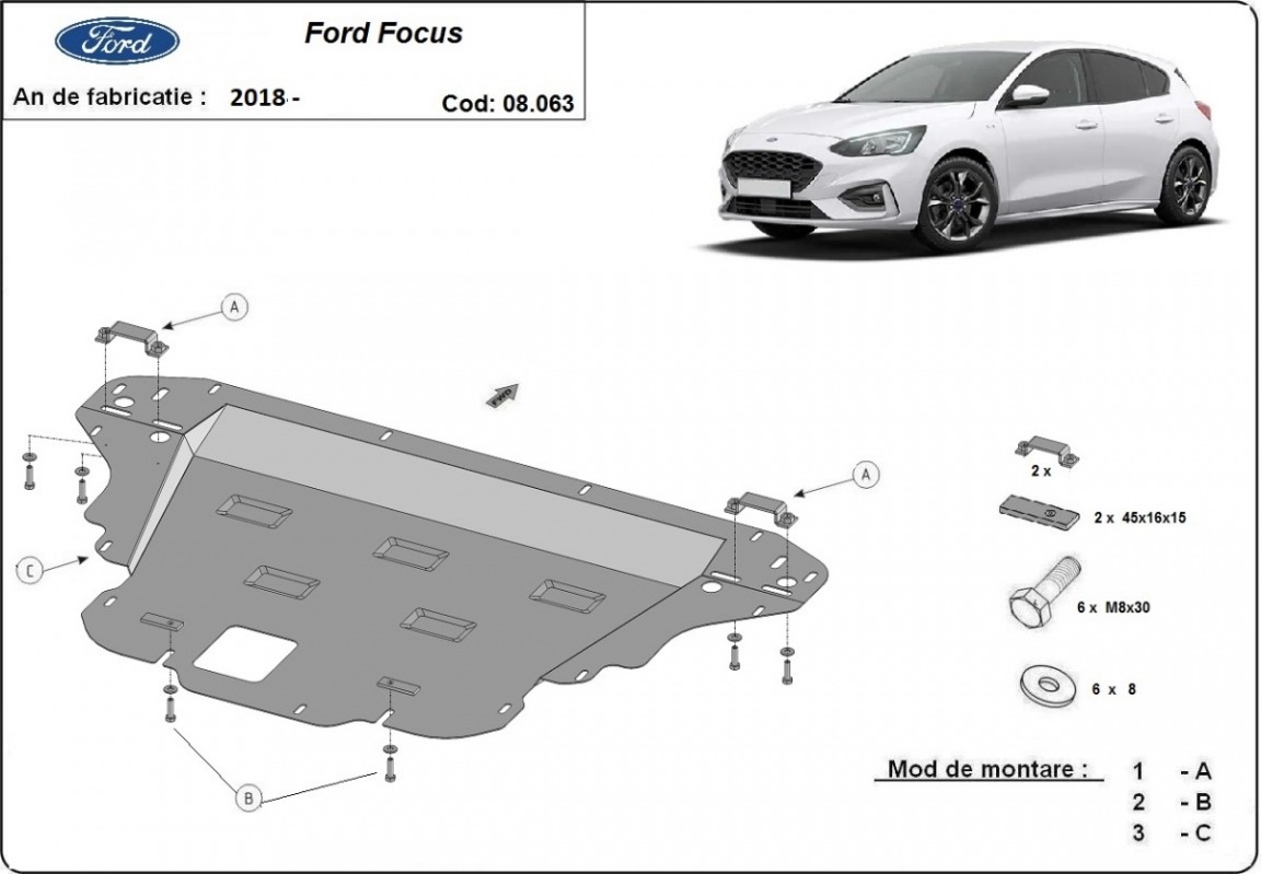 Acél motor, sebességváltó, hűtő, első lökhárító védőlemez Ford Focus 4