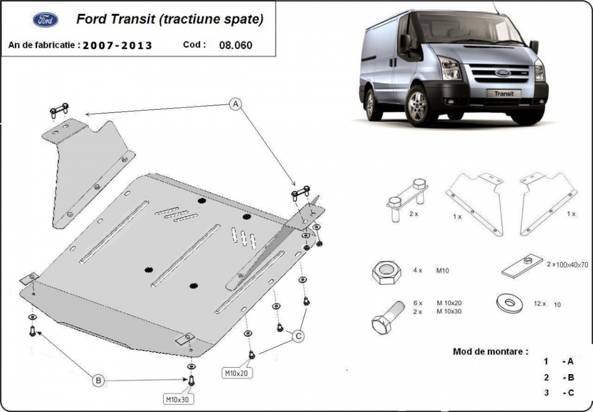 Acél motor, sebességváltó, hűtő, első lökhárító védőlemez Ford Transit - RWD (2007-2013)