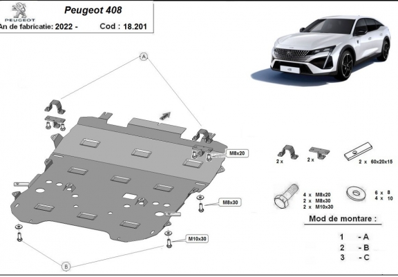 Acél motor, sebességváltó, hűtő, első lökhárító védőlemez Peugeot 408 (2022-2026)