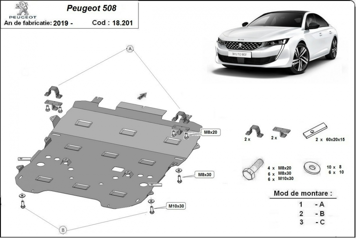 | Minden autóban gyári csavarlyukak vannak a motorvédő lemez felszereléséhez, ami nagyon egyszerűvé teszi a felszerelést. Ezt megteheti saját maga, vagy bármely autószervizben. |