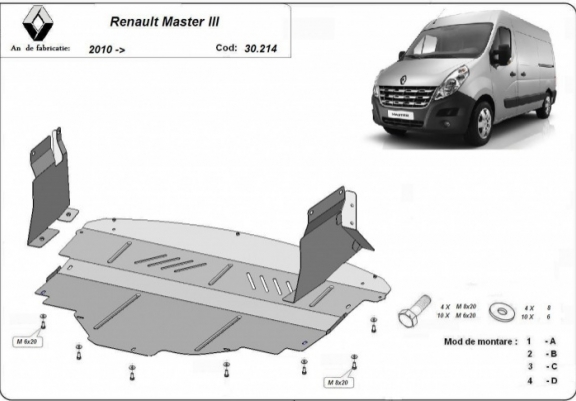 Acél motor, sebességváltó, hűtő, első lökhárító védőlemez Renault Master 3 (2010-2024)