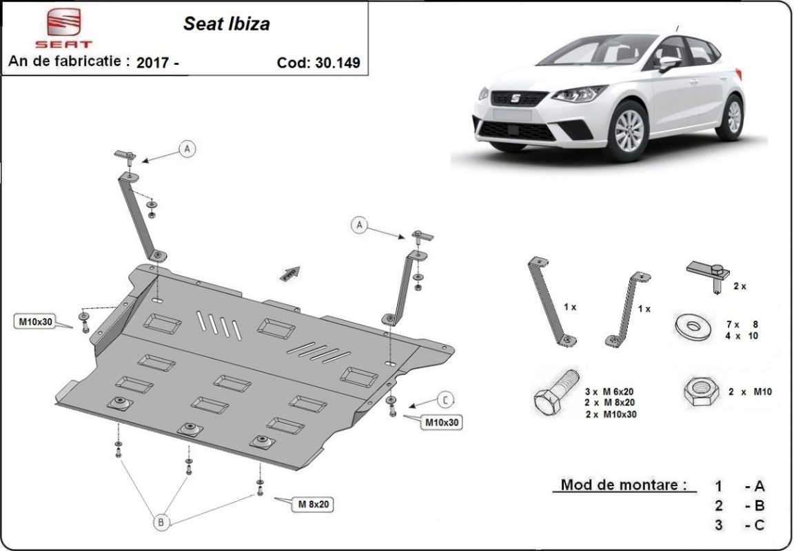 Acél motor, sebességváltó, hűtő, első lökhárító védőlemez Seat Ibiza (2017-2026)