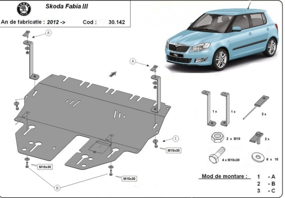 Acél motor, sebességváltó, hűtő, első lökhárító védőlemez Skoda Fabia 3