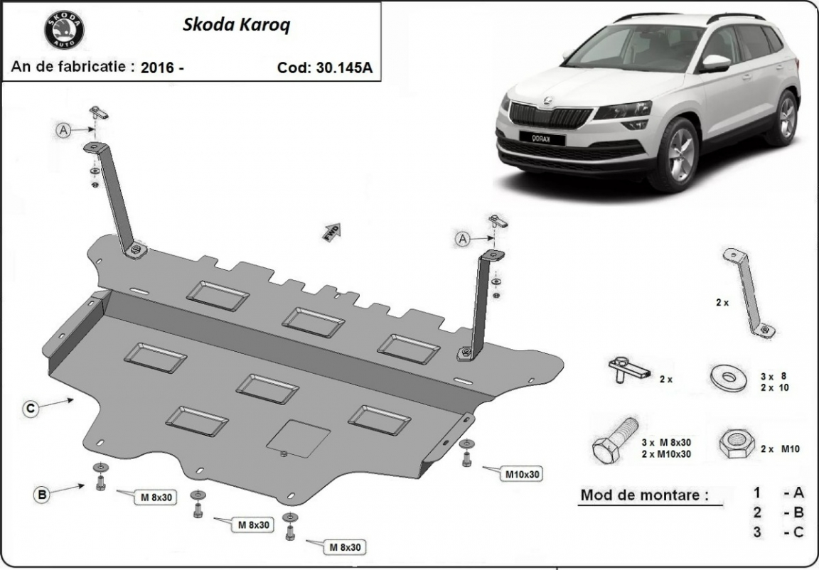 | Minden autóban gyári csavarlyukak vannak a motorvédő lemez felszereléséhez, ami nagyon egyszerűvé teszi a felszerelést. Ezt megteheti saját maga, vagy bármely autószervizben. |