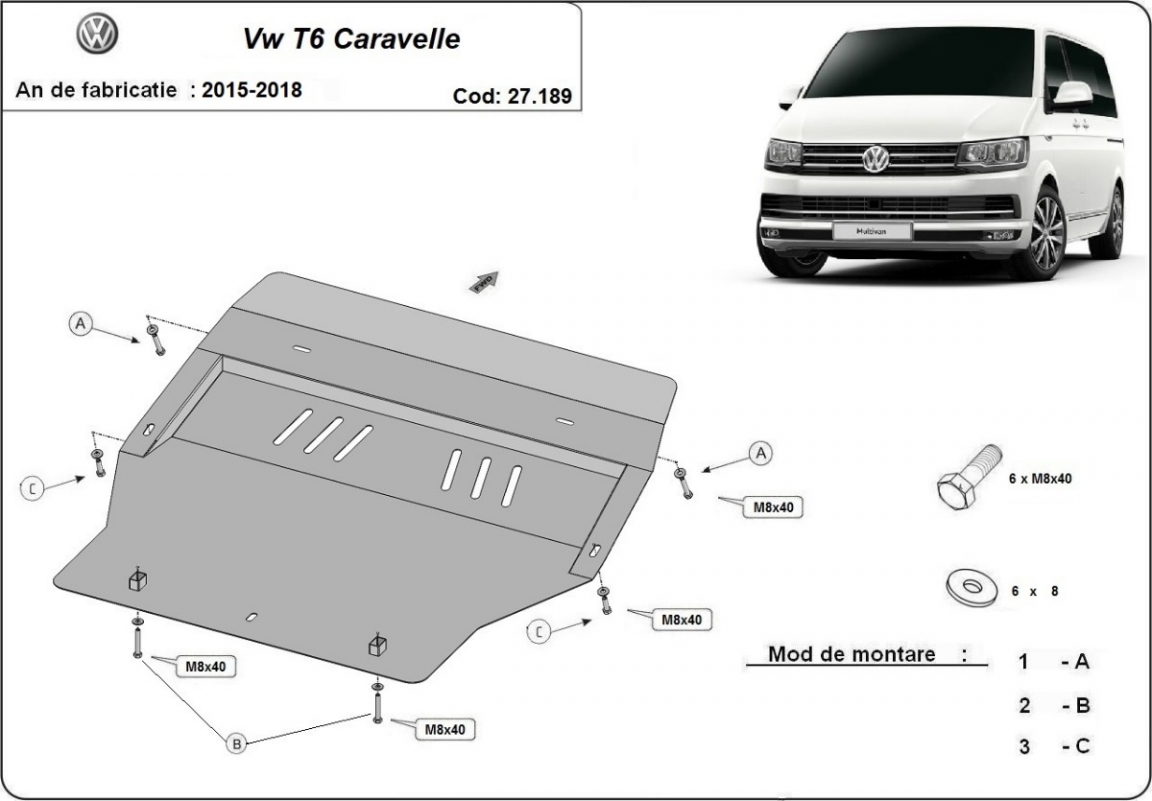 Acél motorvédő lemezünk a következőket védi: motor, kapcsolószekrény, radiátor, első lökharító A motorvédő lemez új, és tökéletesen illeszkedik a Volkswagen Transporter T6 - Caravelle összes 2015 és 2026 között gyártott változatához. 2 mm vastag Acéllemezből készült. Gyárilag kialakított pontokhoz csatlakozik. Méretpontos, A38 H2H acéllemez Minden szükséges tartozék és csavar a csomagban! Minden motorvédőlemezünk porszórt bevonattal van ellátva(porfestett felület), hogy megakadályozza a korróziót. Méretpontos acél lemezekből készül. |