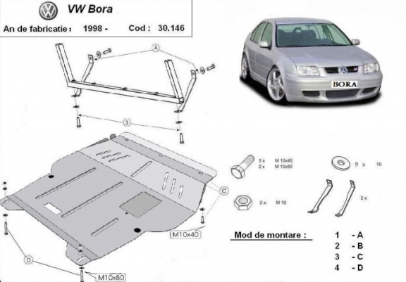Acél motor, sebességváltó, hűtő, első lökhárító védőlemez VW Bora