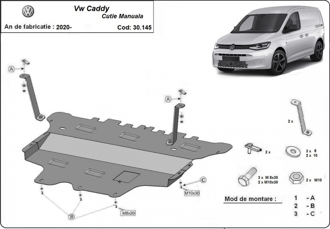 Acél motorvédő lemezünk a következőket védi: motor, kapcsolószekrény, radiátor, első lökharító A motorvédő lemez új, és tökéletesen illeszkedik a VW Caddy összes 2020 és 2026 között gyártott változatához. 2 mm vastag Acéllemezből készült. Gyárilag kialakított pontokhoz csatlakozik. Méretpontos, A38 H2H acéllemez Minden szükséges tartozék és csavar a csomagban! Minden motorvédőlemezünk porszórt bevonattal van ellátva(porfestett felület), hogy megakadályozza a korróziót. Méretpontos acél lemezekből készül. |