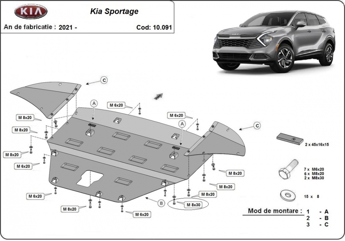 | Minden autóban gyári csavarlyukak vannak a motorvédő lemez felszereléséhez, ami nagyon egyszerűvé teszi a felszerelést. Ezt megteheti saját maga, vagy bármely autószervizben. |
