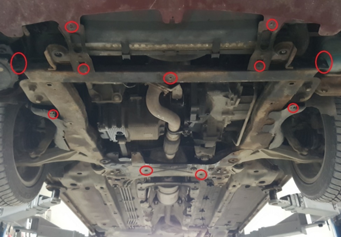 | Minden autóban gyári csavarlyukak vannak a motorvédő lemez felszereléséhez, ami nagyon egyszerűvé teszi a felszerelést. Ezt megteheti saját maga, vagy bármely autószervizben. |