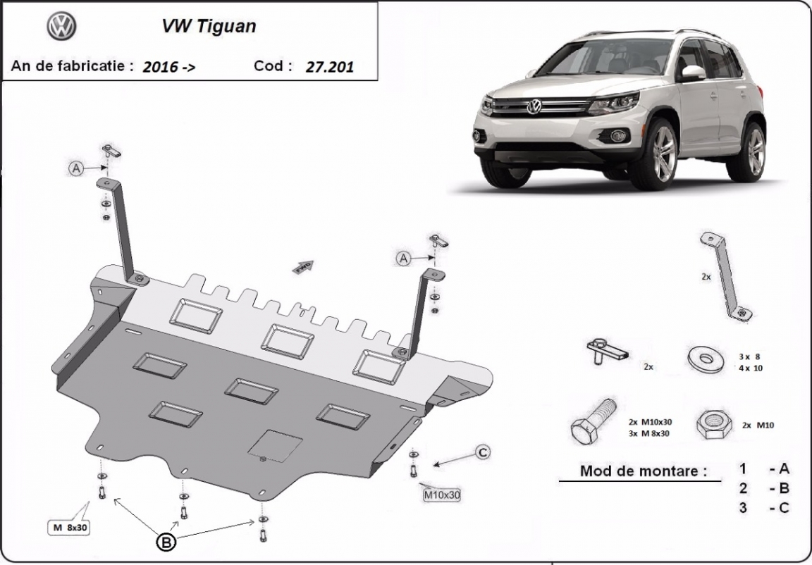 | Minden autóban gyári csavarlyukak vannak a motorvédő lemez felszereléséhez, ami nagyon egyszerűvé teszi a felszerelést. Ezt megteheti saját maga, vagy bármely autószervizben. |