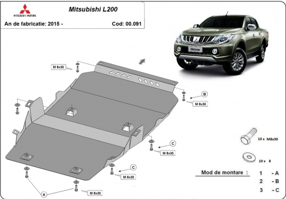 Acél osztómű védőlemez Mitsubishi L200 (2015-2026)