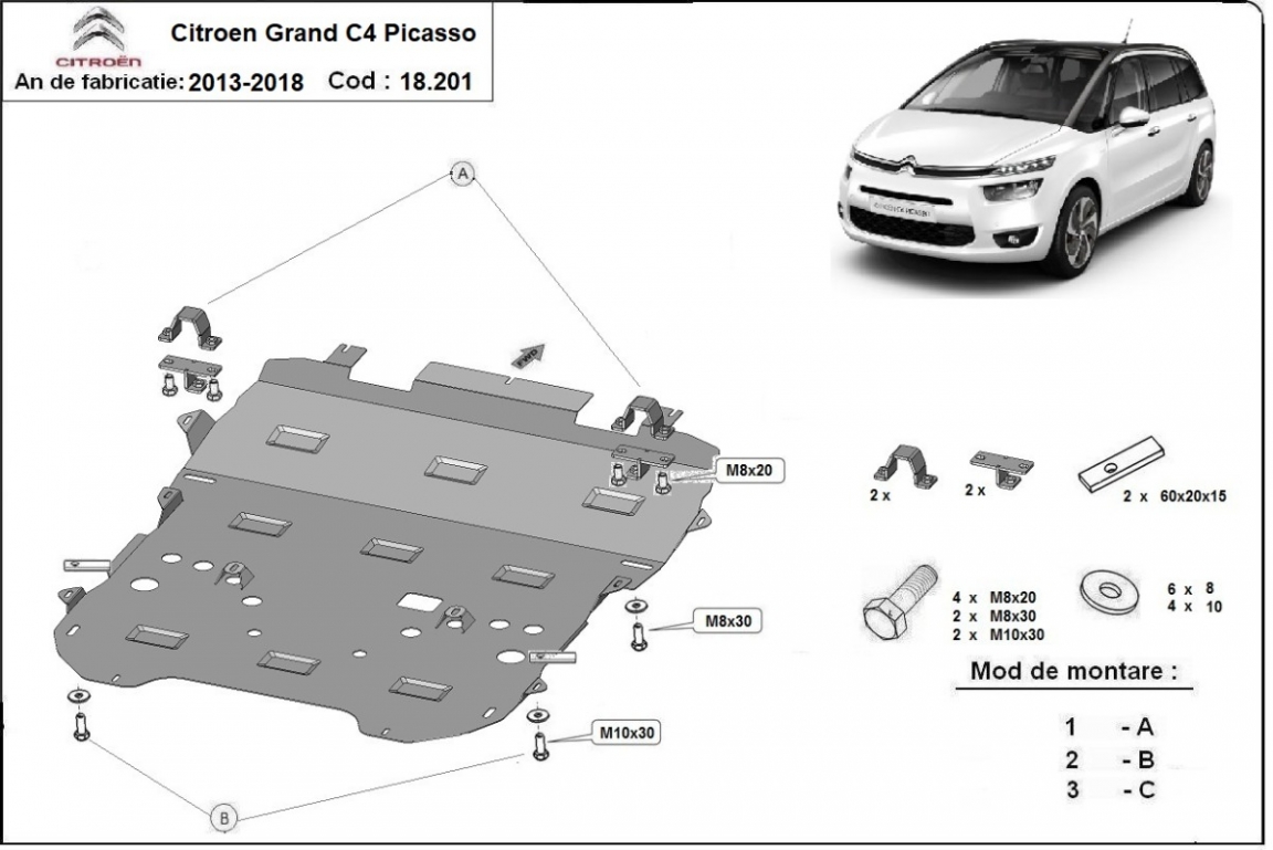 Acél motor,váltó, hűtő védőlemez Citroen Grand C4 Picasso (2013-2018)