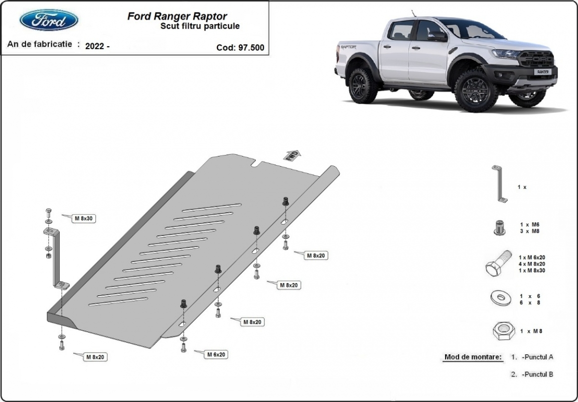 Acél részecskeszűrő védőlemez Ford Ranger Raptor