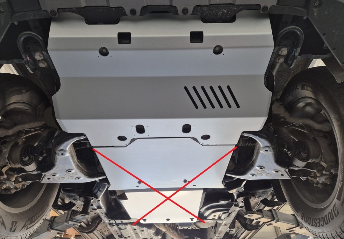 | A motorvédő lemez felszerelése nem jár semmilyen mechanikai változtatást a jármű szerkezetét illetően. |