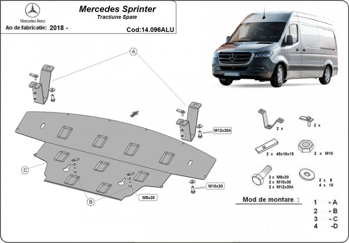 Alumínium motor, hűtő, első lökhárító védőlemez Mercedes Sprinter - RWD (2018-2026)