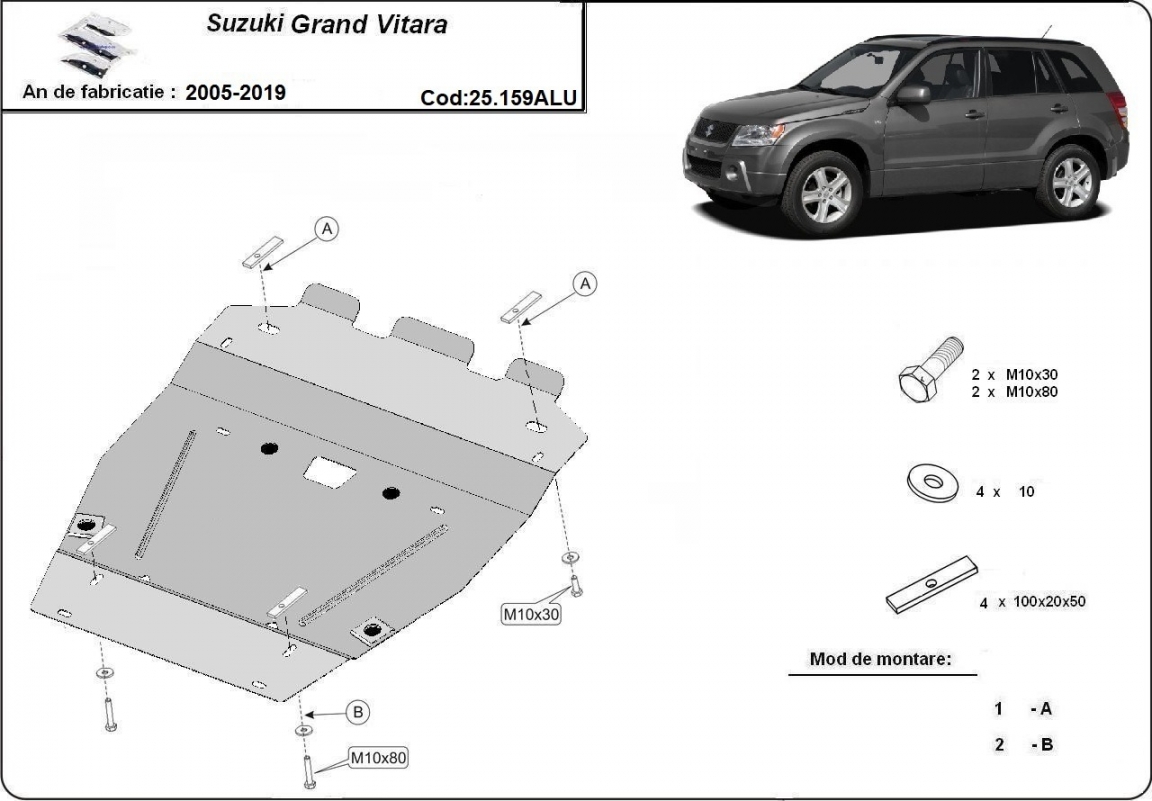 Aluminíum motor, hűtő védőlemez Suzuki Grand Vitara 2 (2005-2019)
