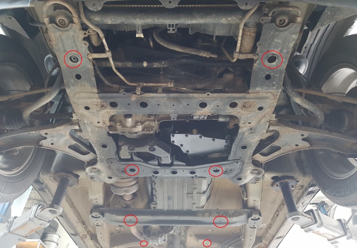 | Minden autóban gyári csavarlyukak vannak a motorvédő lemez felszereléséhez, ami nagyon egyszerűvé teszi a felszerelést. Ezt megteheti saját maga, vagy bármely autószervizben. |