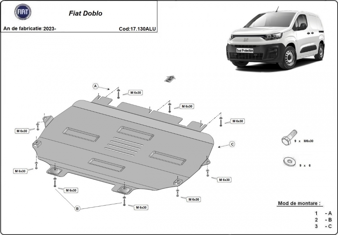 Aluminium motor, kapcsolószekrény védőlemez Fiat Doblo (2023-2026)