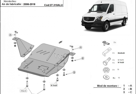 Alumínium motor, kapcsolószekrény védőlemez Mercedes Sprinter (2006-2018)
