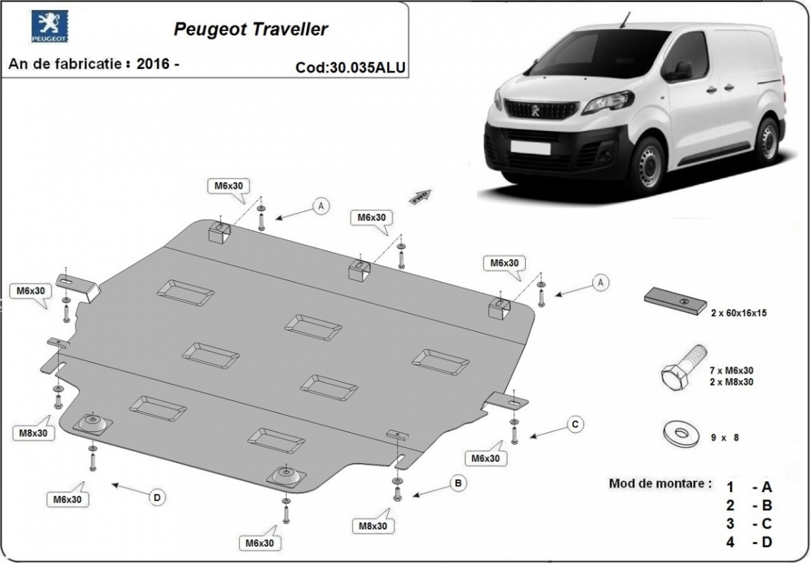 Aluminium motor, kapcsolószekrény védőlemez Peugeot Traveller (2016-2026)