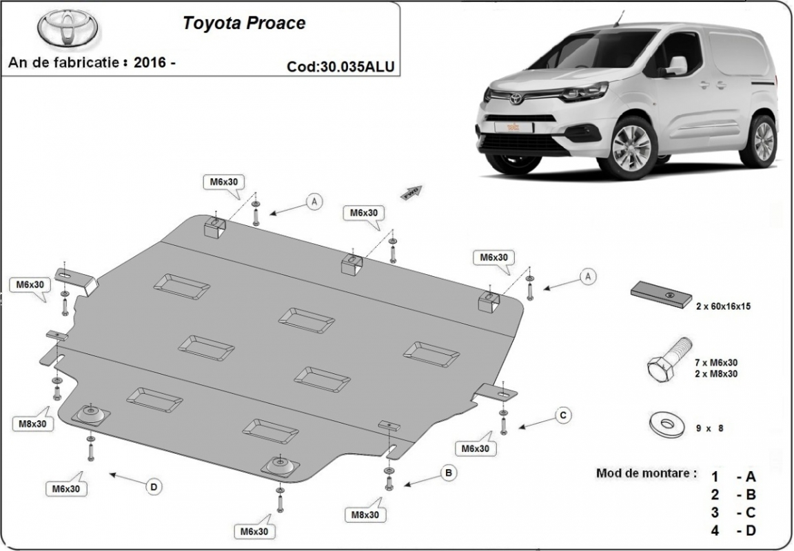 Aluminium motor, kapcsolószekrény védőlemez Toyota Proace (2016-2026)