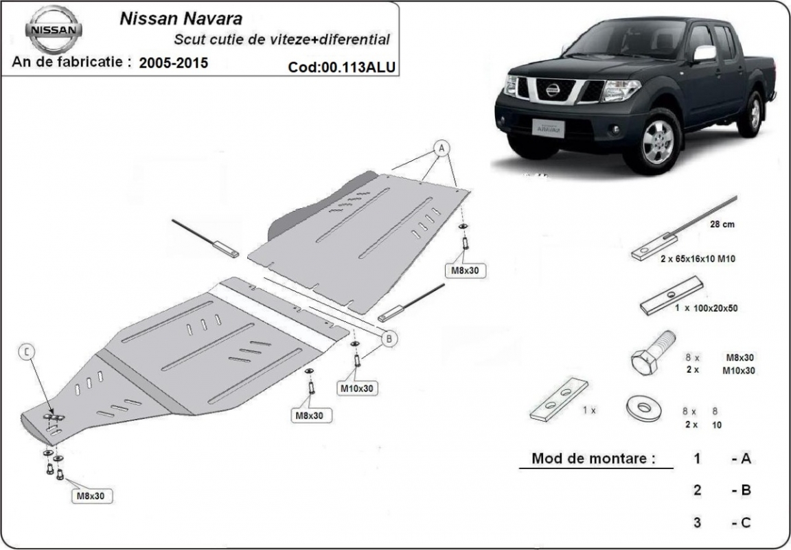 | Minden autóban gyári csavarlyukak vannak a motorvédő lemez felszereléséhez, ami nagyon egyszerűvé teszi a felszerelést. Ezt megteheti saját maga, vagy bármely autószervizben. |