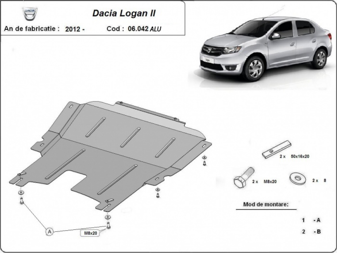 Alumínium motor, kapcsolószekrény védőlemez DACIA LOGAN 2 (2012-2020)