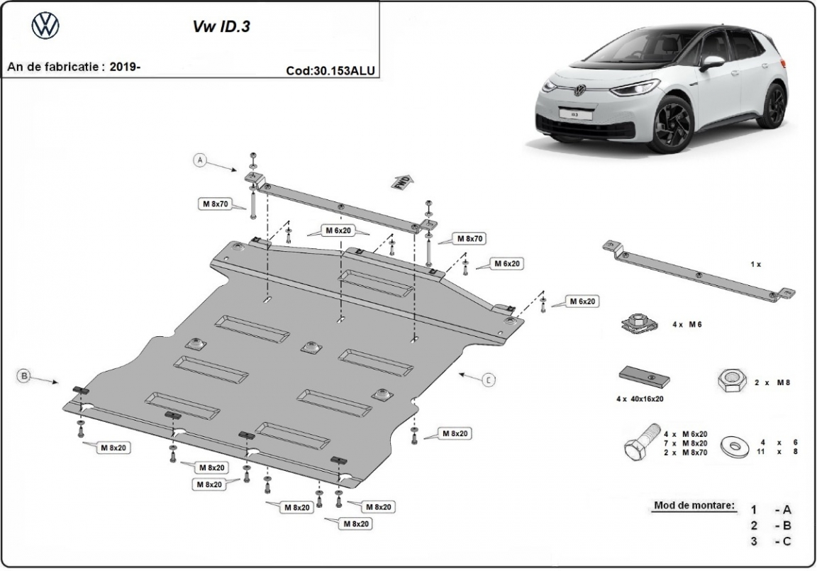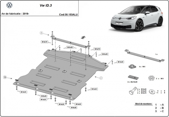 Aluminum motor, sebbeségváltó, hütő, első lökhárító védőlemez Volkswagen ID.3 (2019-2026)