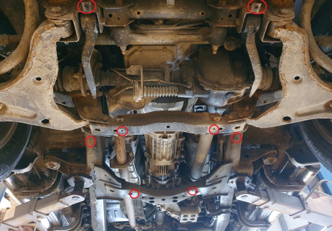 | Minden autóban gyári csavarlyukak vannak a motorvédő lemez felszereléséhez, ami nagyon egyszerűvé teszi a felszerelést. Ezt megteheti saját maga, vagy bármely autószervizben. |