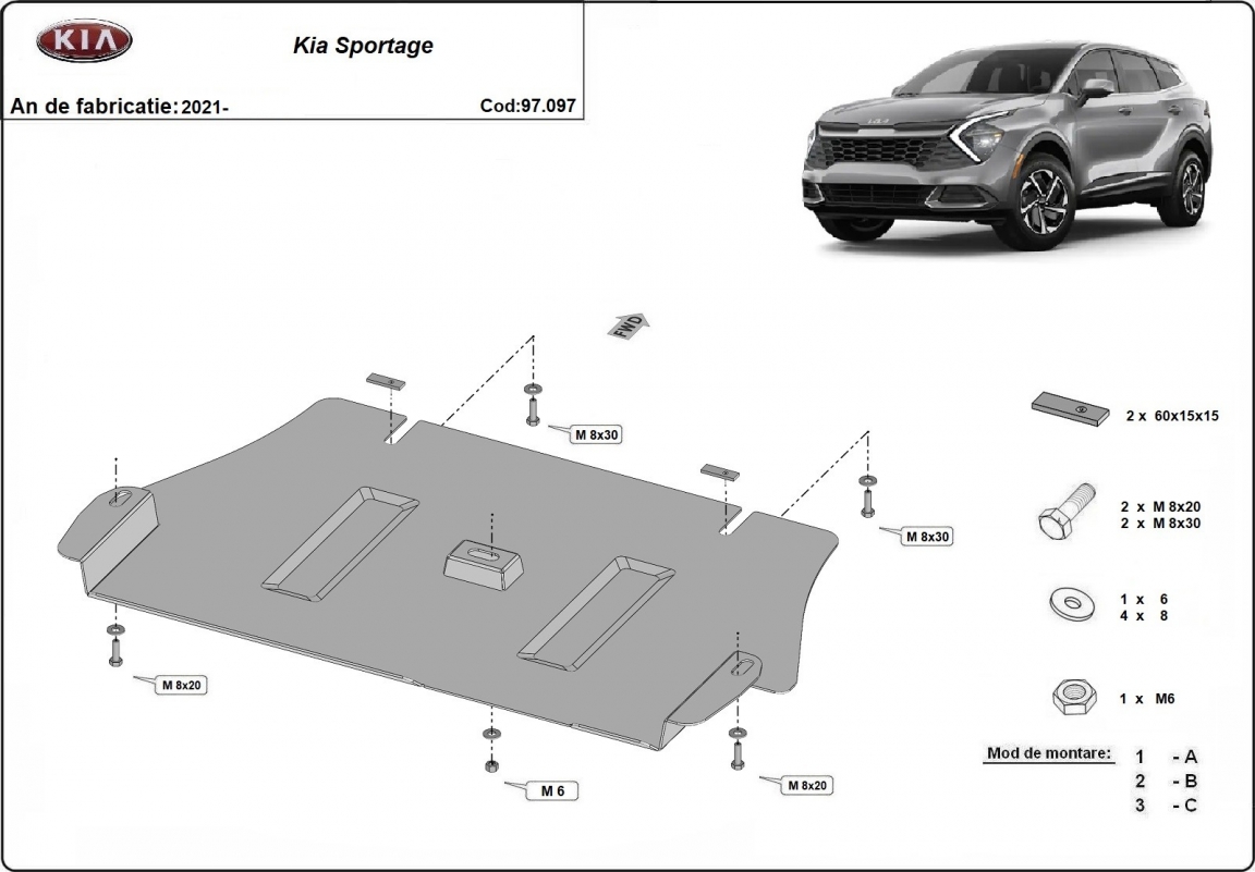 | Minden autóban gyári csavarlyukak vannak a motorvédő lemez felszereléséhez, ami nagyon egyszerűvé teszi a felszerelést. Ezt megteheti saját maga, vagy bármely autószervizben. |