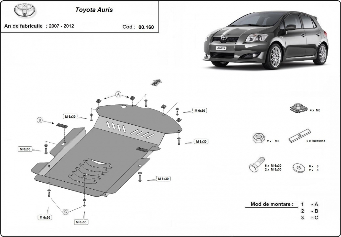 | Minden autóban gyári csavarlyukak vannak a motorvédő lemez felszereléséhez, ami nagyon egyszerűvé teszi a felszerelést. Ezt megteheti saját maga, vagy bármely autószervizben. |