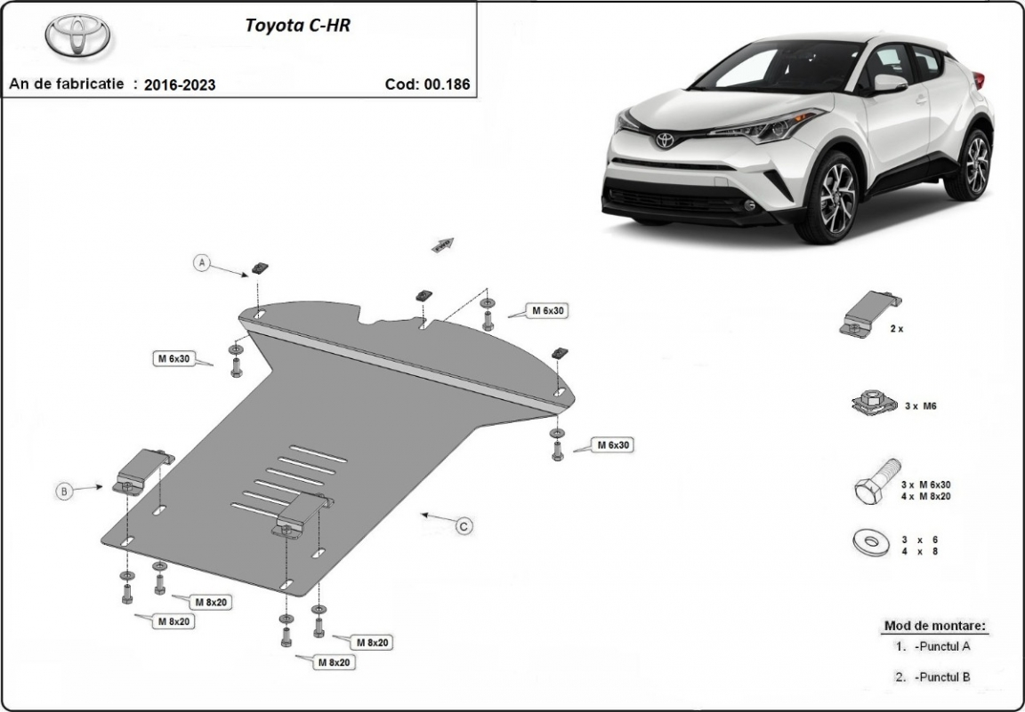 Acél motorvédő lemezünk a következőket védi: katalizátor A motorvédő lemez új, és tökéletesen illeszkedik a Toyota C-HR összes 2016 és 2023 között gyártott változatához. 2 mm vastag Acéllemezből készült. Gyárilag kialakított pontokhoz csatlakozik. Méretpontos, A38 H2H acéllemez Minden szükséges tartozék és csavar a csomagban! Minden motorvédőlemezünk porszórt bevonattal van ellátva(porfestett felület), hogy megakadályozza a korróziót. Méretpontos acél lemezekből készül. |
