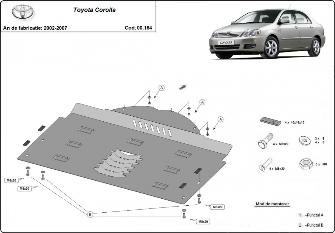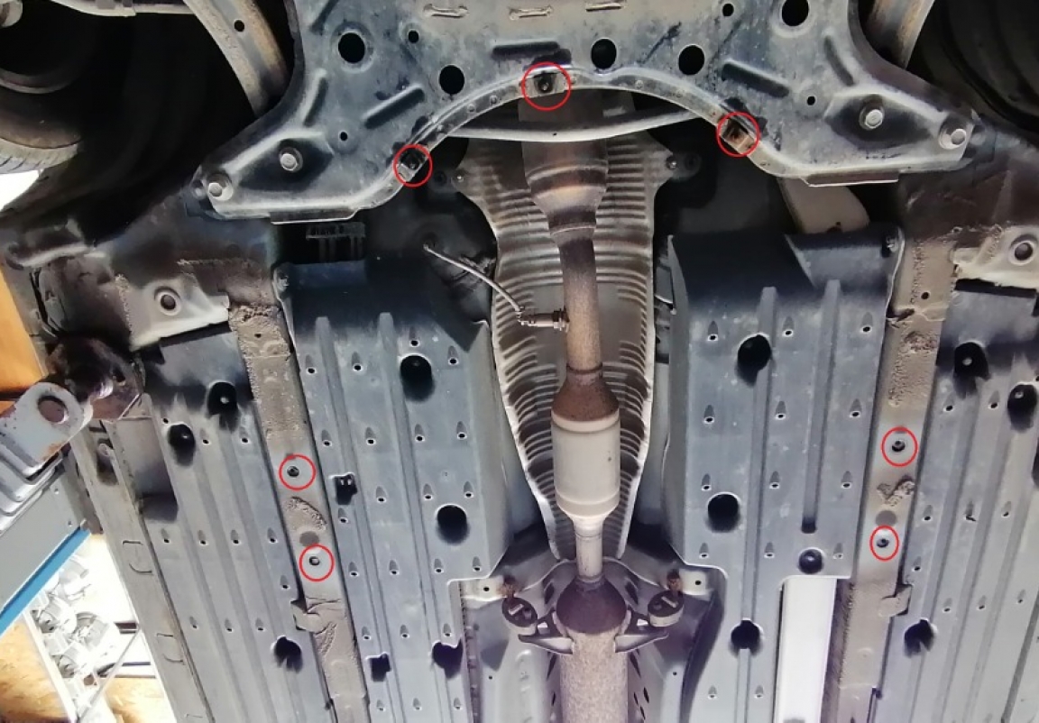 | Minden autóban gyári csavarlyukak vannak a motorvédő lemez felszereléséhez, ami nagyon egyszerűvé teszi a felszerelést. Ezt megteheti saját maga, vagy bármely autószervizben. |