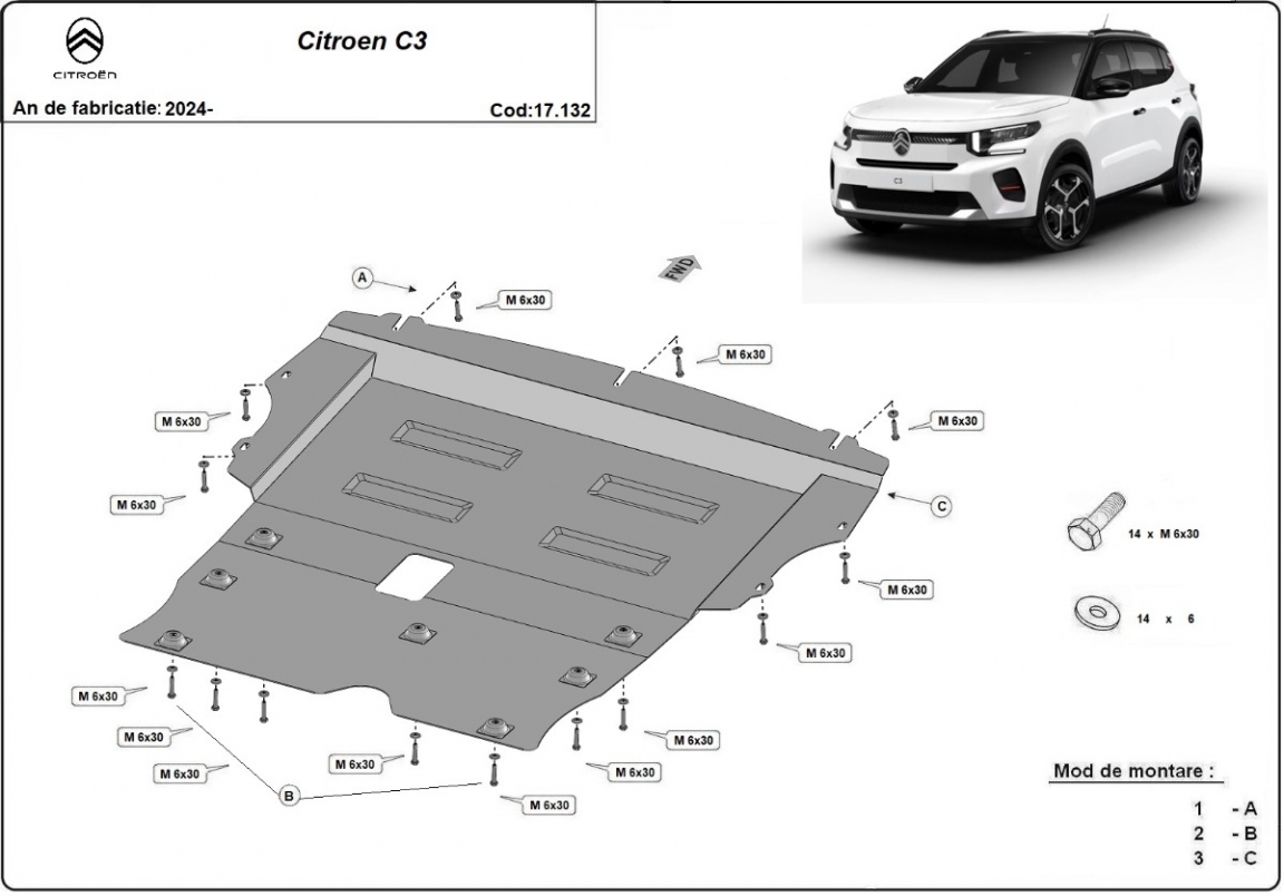 Acél motor, kapcsolószekrény védőlemez Citroen C3 (2024-2026)