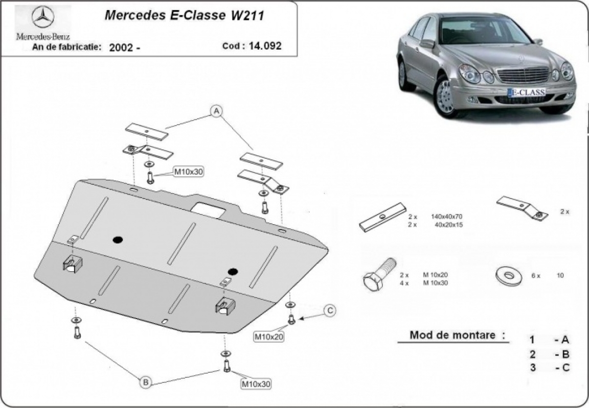 Motor, karter- védő acéllemez Mercedes E-Classe W211 (2002-2008)