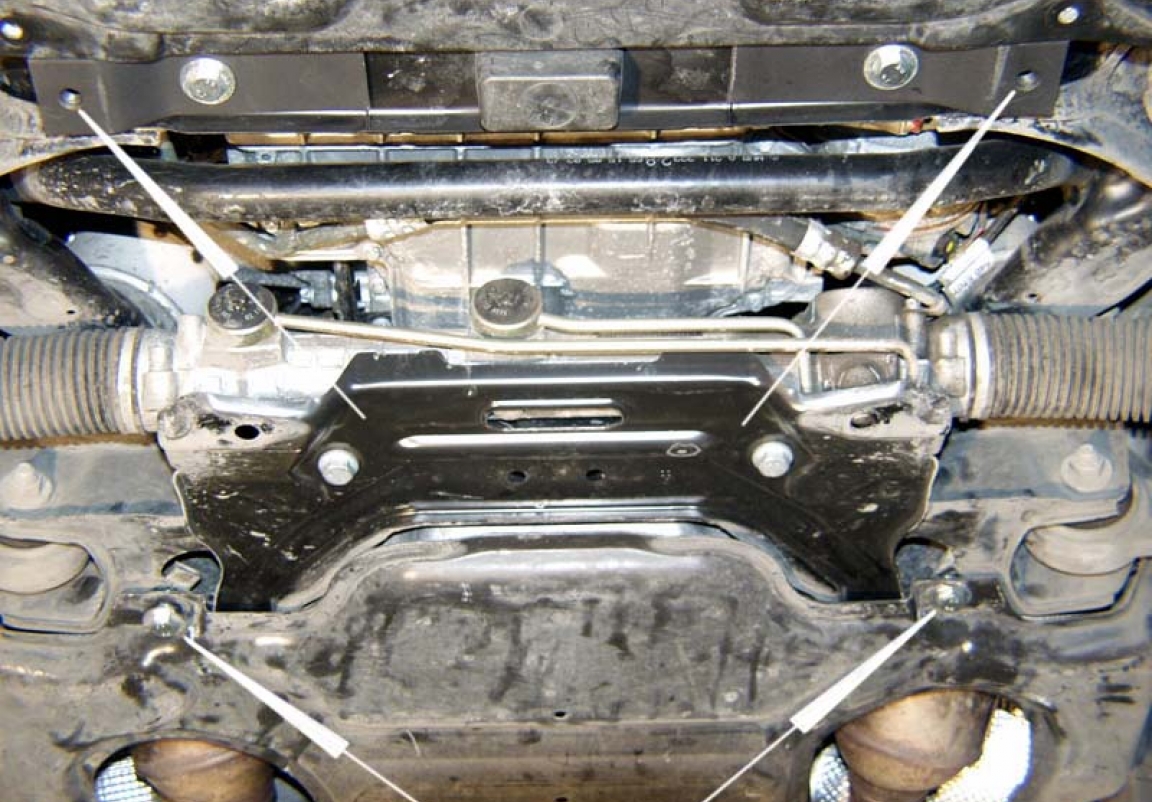 | Minden autóban gyári csavarlyukak vannak a motorvédő lemez felszereléséhez, ami nagyon egyszerűvé teszi a felszerelést. Ezt megteheti saját maga, vagy bármely autószervizben. |
