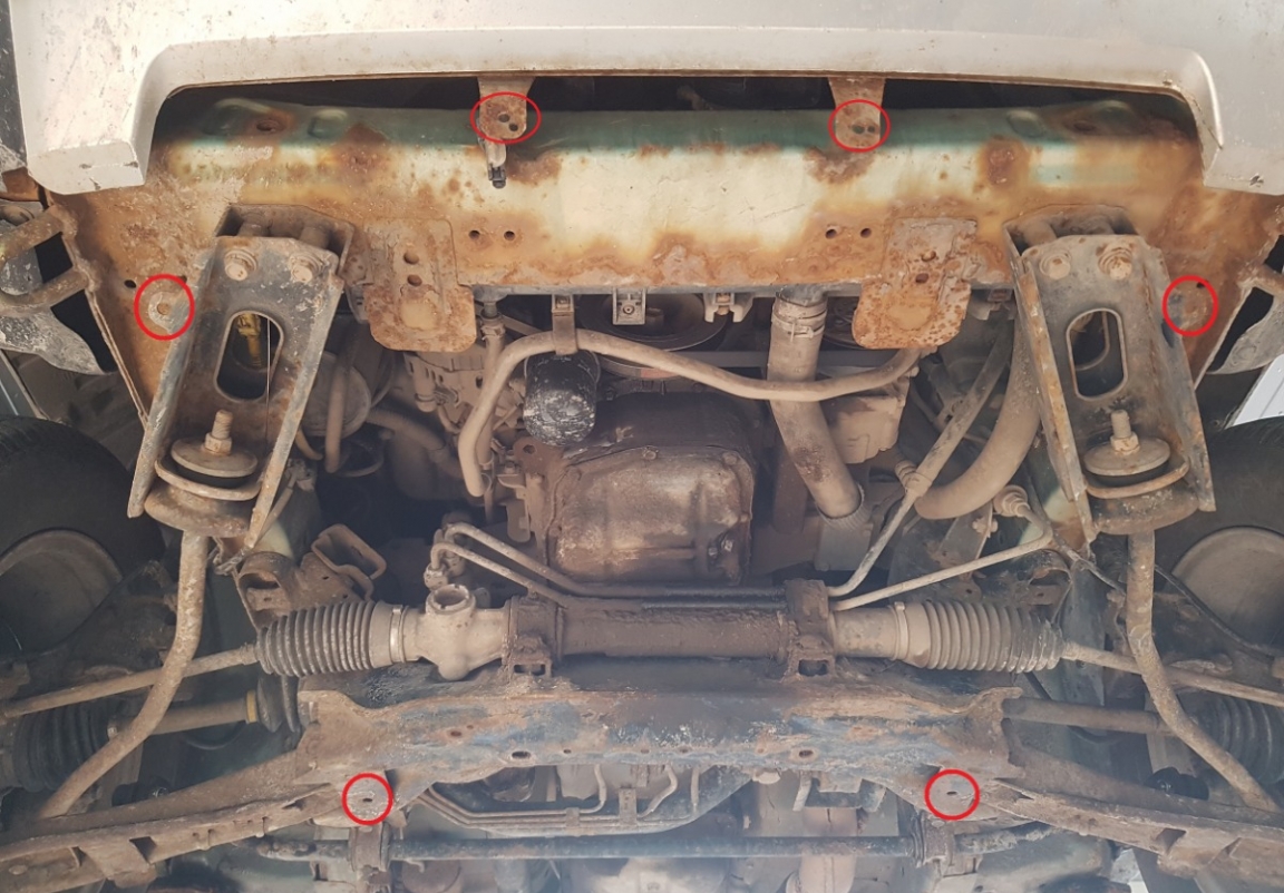 | Minden autóban gyári csavarlyukak vannak a motorvédő lemez felszereléséhez, ami nagyon egyszerűvé teszi a felszerelést. Ezt megteheti saját maga, vagy bármely autószervizben. |