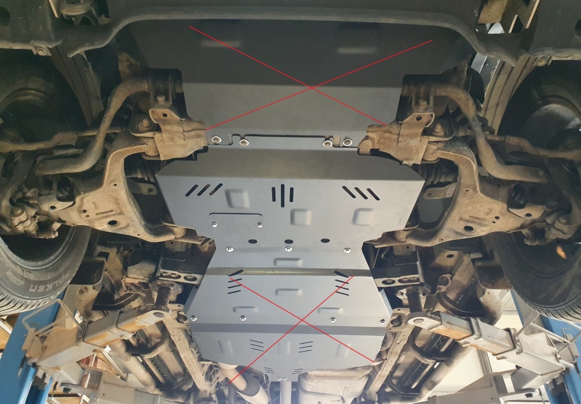 | A motorvédő lemez felszerelése nem jár semmilyen mechanikai változtatást a jármű szerkezetét illetően. |