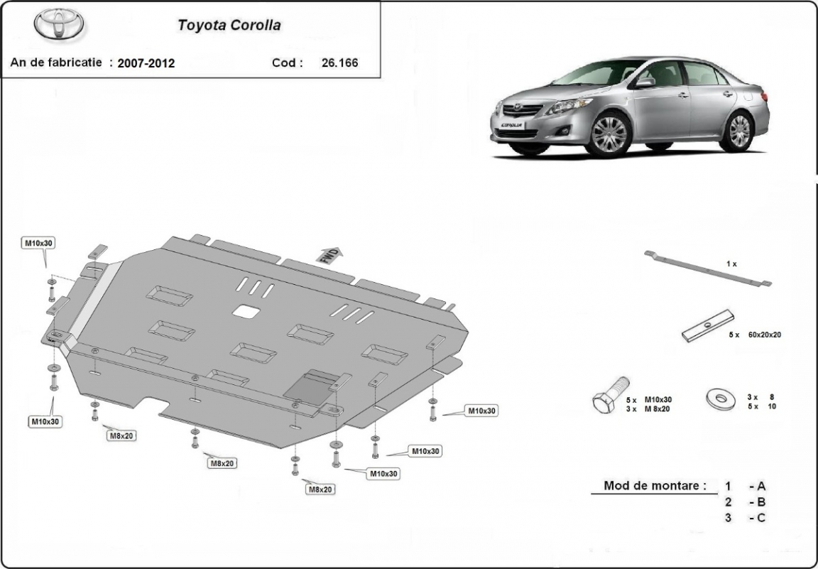 Motor, karter- védő acéllemez Toyota Corolla (2007-2012)