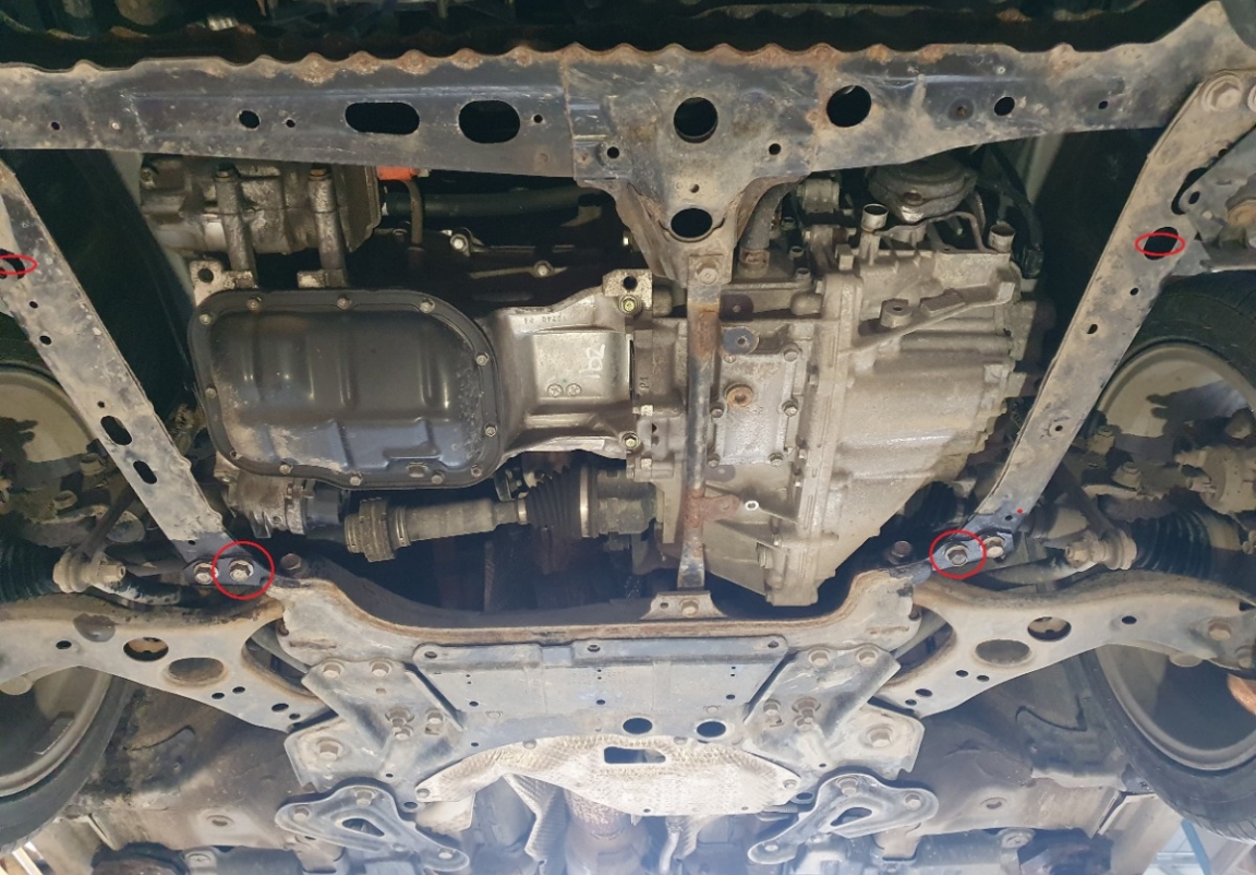 | Minden autóban gyári csavarlyukak vannak a motorvédő lemez felszereléséhez, ami nagyon egyszerűvé teszi a felszerelést. Ezt megteheti saját maga, vagy bármely autószervizben. |