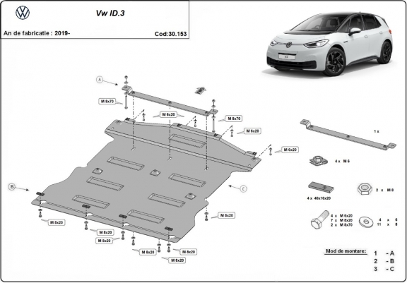 Motor, karter- védő acéllemez Volkswagen ID 3 (2019-2026)