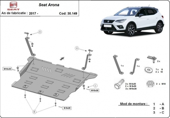 Acél motor, kapcsolószekrény védőlemez Seat Arona (2017-2026)